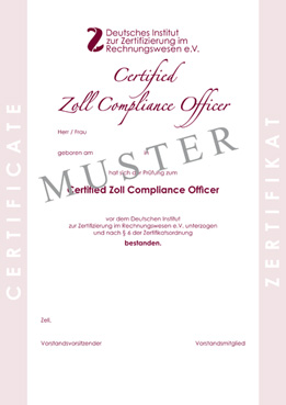 Der Certified Zoll Compliance Officer wird als Leiter einer Zoll-/Außenwirtschaftsabteilung in kleinen, mittleren oder großen Unternehmen eingesetzt. Er unterstützt direkt die Geschäftsleitung oder den Ausfuhrverantwortlichen. Seine Aufgabe ist es die Einhaltung der Zollvorschriften bei Ein- und Ausfuhrgeschäften des Unternehmens zu überwachen, aber auch als Berater der Unternehmensleitung im Ausfuhrgeschäft zu agieren. Als direkter Manager der Geschäftsleitung übernimmt er die gesamte Verantwortung für die Organisation und Umsetzung der Zollprozesse, er ist Ansprechpartner für die Zollbehörden.